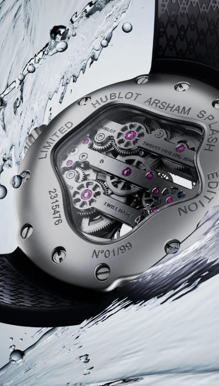 Following the transformable pocket watch launched by Hublot in 2024 – its first collaboration with contemporary artist and Hublot Ambassador Daniel Arsham – the partnership has now seen the launch of a wristwatch, the best fake Hublot Exceptional Timepieces MP-17 Meca-10 Arsham Splash Titanium Sapphire watches. It’s a timepiece that once again rewrites the rulebook on watch design, finding its inspiration in the dynamic essence of water, organic forms, and transparency.